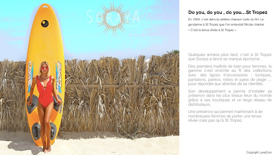 Soraya, voilà bien un beau nom pour une princesse. Son nom en Perse veut dire « la beauté des étoiles » et nous susurre le charme de Romy et de « La Piscine », ainsi que du pagne que La Pérouse, dans la description de ses voyages, désigne plus largement comme «un coupon d’étoffe qui sert à envelopper le corps d’une Vahiné». Flaubert décrit également, dans son œuvre, l’enveloppe subtile utilisée par les Africaines au cœur simple juste au pied du Kilimandjaro et de ses neiges éternelles.